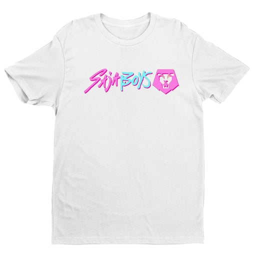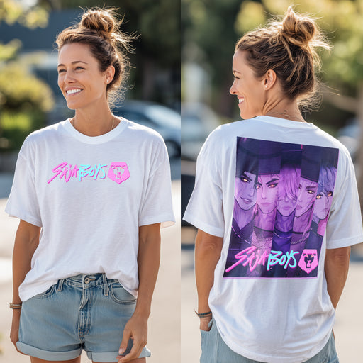 Step into the bold world of Saja Boys — where anime flair meets retro neon vibes. This limited-edition tee showcases powerful character artwork on the back, paired with the electric Saja Boys logo on the chest. Designed for fans of anime, streetwear, and striking aesthetics.