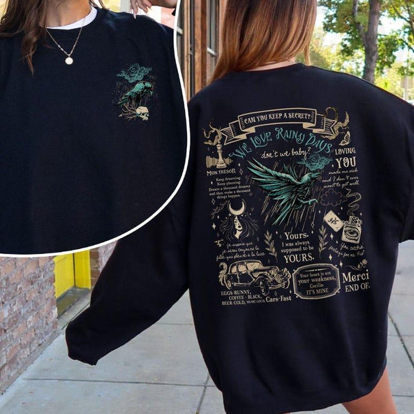 Vintage Graphic Oversized Sweatshirt – Boho Gothic Bird & Quote Print Pullover