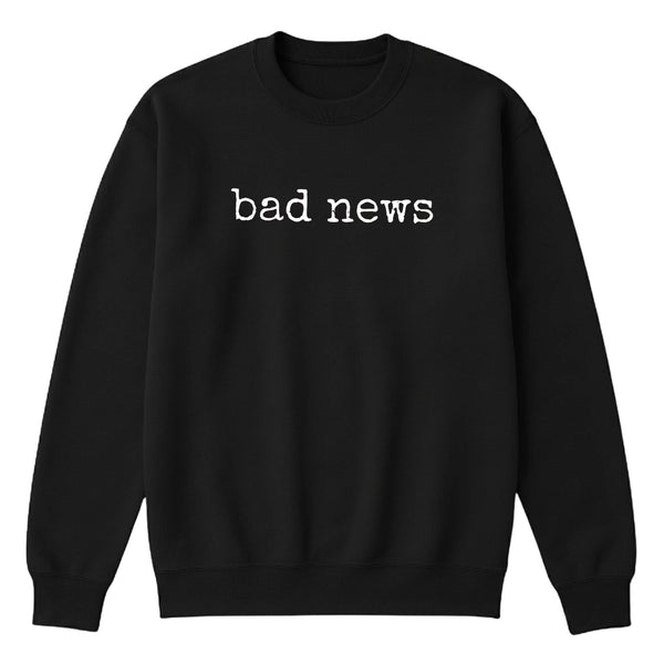 Bad News Sweatshirt – Minimalist Typography Crewneck, Trendy Grunge Streetwear Pullover, Unisex Casual Aesthetic Jumper
