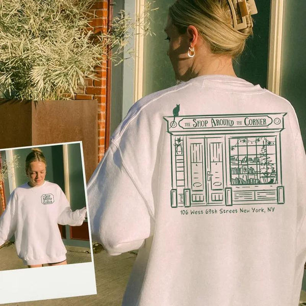 The Shop Around The Corner Sweatshirt | Vintage Bookstore Graphic Pullover | Cozy Oversized Unisex Top
