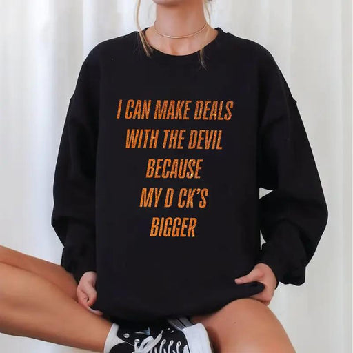 “I Can Make Deals With The Devil Because My D*ck’s Bigger”, this pullover is made for those who love dark humor, sarcasm, and confidence that turns heads.